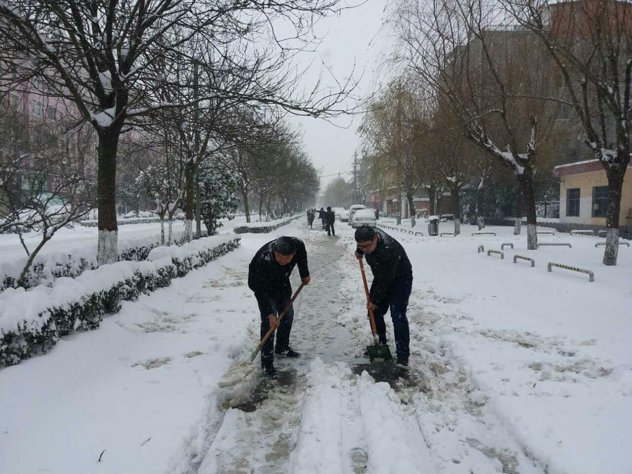 13日,遂平縣普降暴雪,路面積滿一層厚厚的冰雪,給出行人員帶來極大的不便。該店在4日上午一上班就組織后勤人員清掃路面積雪。大家揮動(dòng)鐵锨和掃把,分工協(xié)作,干得熱火朝天,保障了群眾暢通、有序、和諧的道路交通和生產(chǎn)、生活環(huán)境。