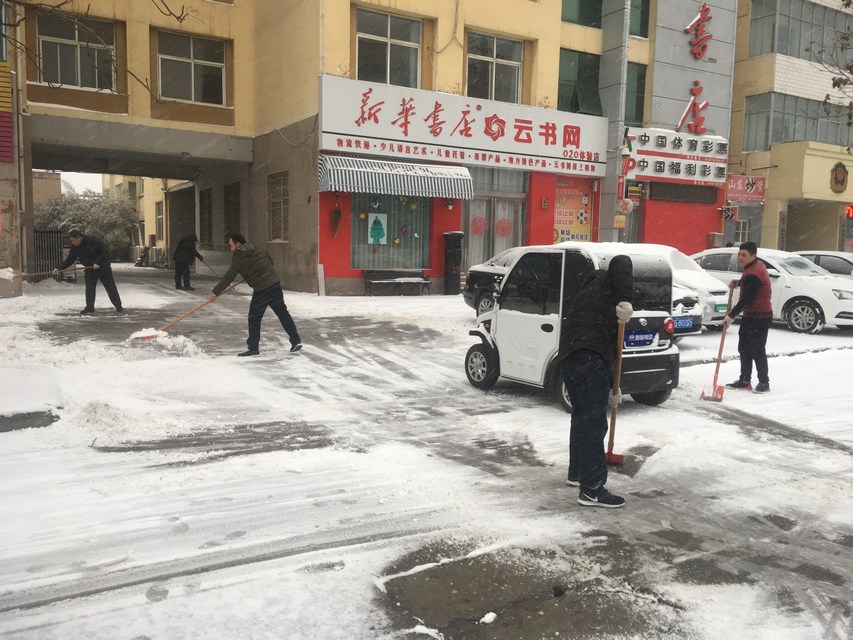 該店各部門在雪天已做好值班安排,定期打掃路面積雪,確保書店門前交通和經(jīng)營工作正常運(yùn)行。
