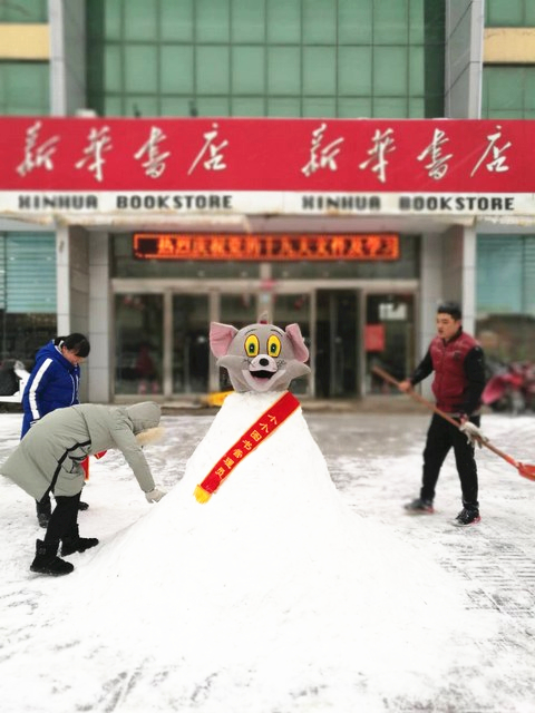 進(jìn)入冬季,衛(wèi)輝市店時(shí)刻關(guān)注天氣變化,提前備好掃把、鏟雪板等相關(guān)掃雪工具,通知全店各部門提前做好雨雪天氣應(yīng)急方案。1月4日清晨,2018年的第一場大雪已將路面覆蓋,一大早,書店職工自發(fā)組織清理中心門市部的路面積雪,把積雪堆成卡通雪人,喜迎顧客光臨。