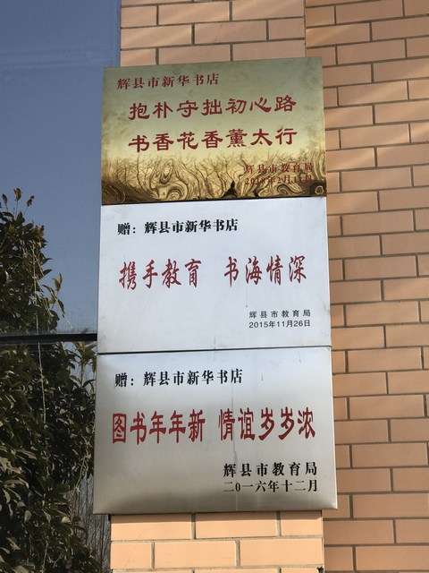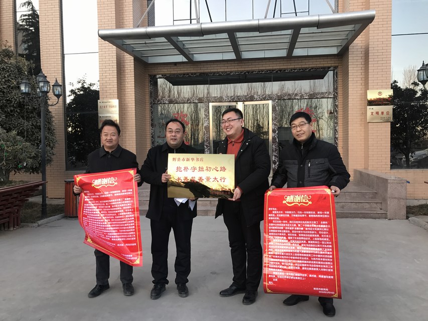 近日,輝縣市教育局副局長王琪一行代表教育局黨委來到輝縣市店,他們給該店送來了一個(gè)抱樸守拙初心路,書香花香熏太行并送來感謝信一封,充分肯定了輝縣市店2017年的工作,并對(duì)店多年來對(duì)教育工作的支持表示感謝。這是輝縣市教育局連續(xù)三年給該店送來牌匾和感謝信。