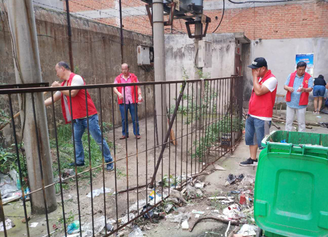 全體黨員志愿者身著紅馬甲,組織有序,分工明確,有的手拿撿拾器和塑料袋,對小區(qū)綠化帶、地面雜物和衛(wèi)生死角進行了清潔打掃,有的手拿小鐵鏟對粘貼在墻上的小廣告進行了清除,有的推著小車將樓道內(nèi)的雜物運走。時值盛夏,烈日當(dāng)頭,氣溫達到36度以上,志愿者們被熱浪包圍,汗水濕透了衣衫,卻沒有一個人放松懈怠,大家不怕臟,不怕累,干勁十足,毫無怨言。一個多小時后,在志愿者們的齊心協(xié)力下,將小區(qū)打掃的煥然一新,徹底解決了小區(qū)存在的臟、亂、差問題,居民們紛紛點贊。