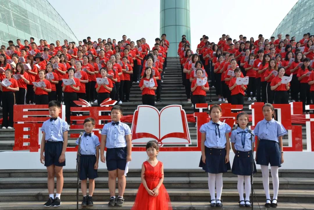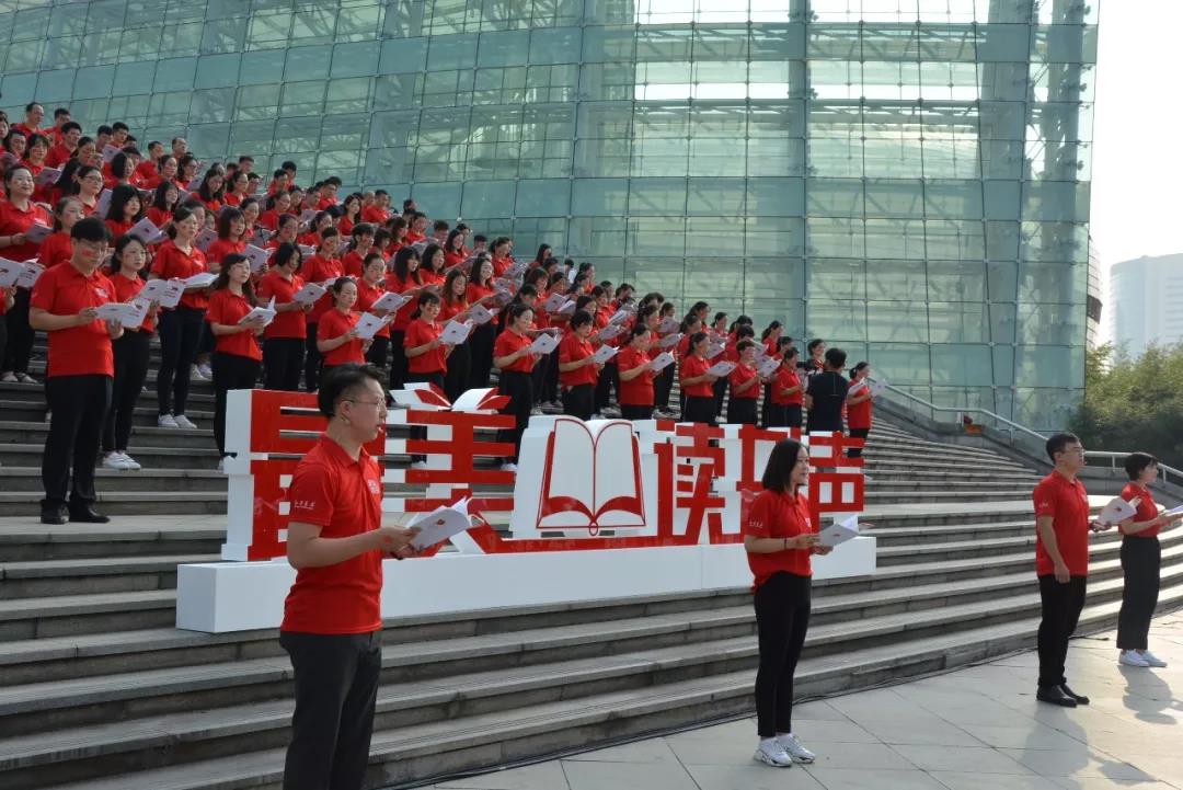 由中共河南省委宣傳部、中原出版?zhèn)髅郊瘓F(tuán)指導(dǎo),河南省新華書店發(fā)行集團(tuán)承辦的“慶祝新中國(guó)成立70周年‘最美讀書聲’全民閱讀活動(dòng)”伴隨著悠揚(yáng)熟悉的旋律和瑯瑯誦讀聲,9月28日上午10:30,百城同唱“我和我的祖國(guó)”慶祝新中國(guó)成立70周年——“最美讀書聲”全民誦讀快閃活動(dòng),在我省各市縣300多處文化地標(biāo)、核心區(qū)域或商業(yè)中心同時(shí)舉辦,全省10000多名新華人攜數(shù)萬群眾共同唱響“我和我的祖國(guó)”,用初心和使命為祖國(guó)70華誕獻(xiàn)禮。