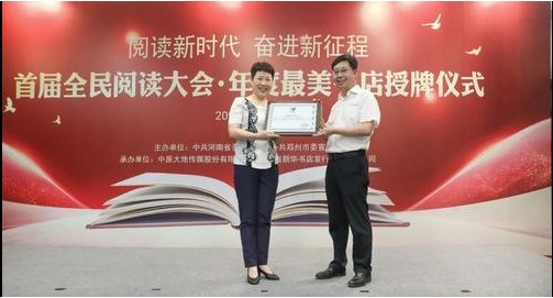 近日,首屆全民閱讀大會(河南)年度最美書店授牌儀式在鄭州市新華書店鄭州購書中心舉行,鄭州購書中心獲頒“年度最美書店”獎牌。本次授牌儀式由河南省委宣傳部、鄭州市委宣傳部主辦,中原大地傳媒股份有限公司、河南省新華書店發(fā)行集團(tuán)有限公司承辦。