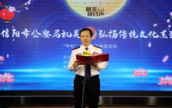 為大力弘揚(yáng)中華民族傳統(tǒng)文化,9月6日下午,信陽(yáng)市公安局機(jī)關(guān)在新華書(shū)店中心書(shū)城隆重舉辦弘揚(yáng)傳統(tǒng)文化系列之“中秋”主題詩(shī)歌誦讀活動(dòng)。信陽(yáng)市公安局、市新華書(shū)店相關(guān)領(lǐng)導(dǎo)出席活動(dòng)。