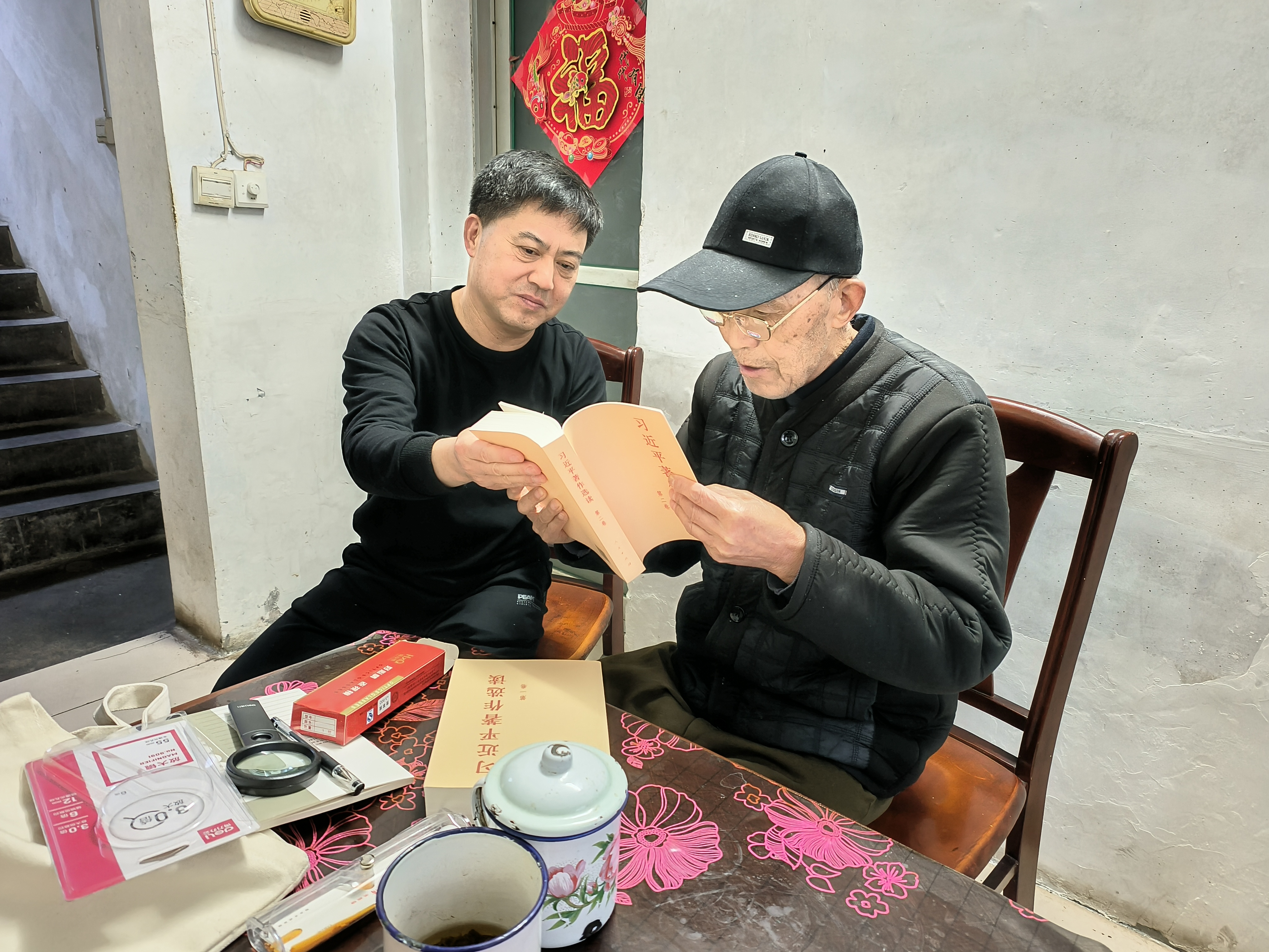 近日,確山縣店黨支部書記賀建格來到91歲高齡的縣店第二任黨支部書記陶守亭家中,為他送去《習(xí)近平著作選讀》《習(xí)近平新時(shí)代中國特色社會(huì)主義思想專題摘編》等學(xué)習(xí)資料和筆記本、老花鏡、放大鏡等學(xué)習(xí)用品,送上了黨組織的關(guān)懷和問候,聽取老書記對(duì)于開展主題教育的意見建議。