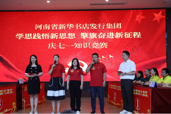 在慶祝中國共產(chǎn)黨102周年華誕之際,河南省新華書店發(fā)行集團黨委于7月6日隆重舉辦“學(xué)思踐悟新思想 擎旗奮進新征程”慶“七一”知識競賽,發(fā)行集團7個黨支部選派選手組隊參加比賽。集團公司黨委編輯委員會辦公室主任李志強到場指導(dǎo)。