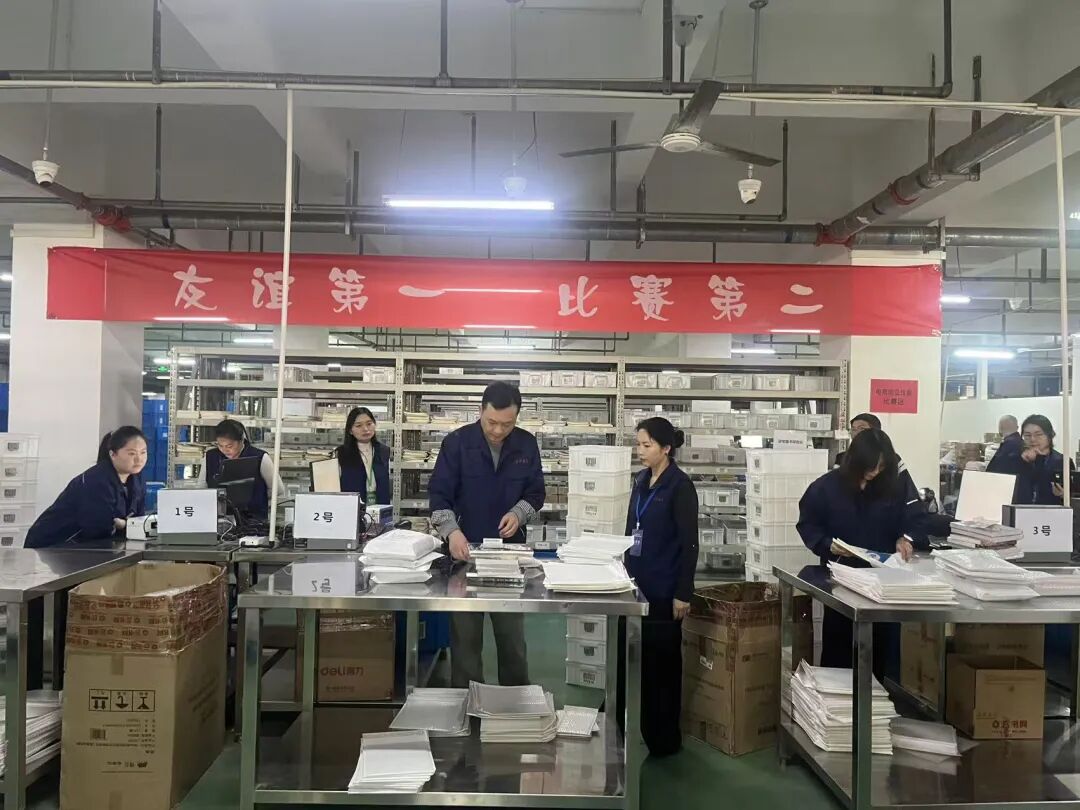 賽場上,選手們精神飽滿、奮勇爭先,構(gòu)成了一副“比學(xué)趕超”的生動畫面。站駕叉車計時賽現(xiàn)場,參賽選手沉著操控,精準(zhǔn)避開障礙、控制車速,在狹窄通道內(nèi)靈活轉(zhuǎn)向,既展現(xiàn)了嫻熟的駕駛技能,更凸顯了“安全第一”的作業(yè)理念;手工包裝團(tuán)體計時賽現(xiàn)場,參賽團(tuán)隊手法嫻熟、分工明確、配合默契,不斷刷新紀(jì)錄,實現(xiàn)“速度與質(zhì)量”雙優(yōu)雙提升;電商崗位技能賽現(xiàn)場,參賽選手精準(zhǔn)操作,同時自如切換多個系統(tǒng),細(xì)致快速完成打包作業(yè),展現(xiàn)出極高的職業(yè)素養(yǎng)及精湛的手工作業(yè)能力。