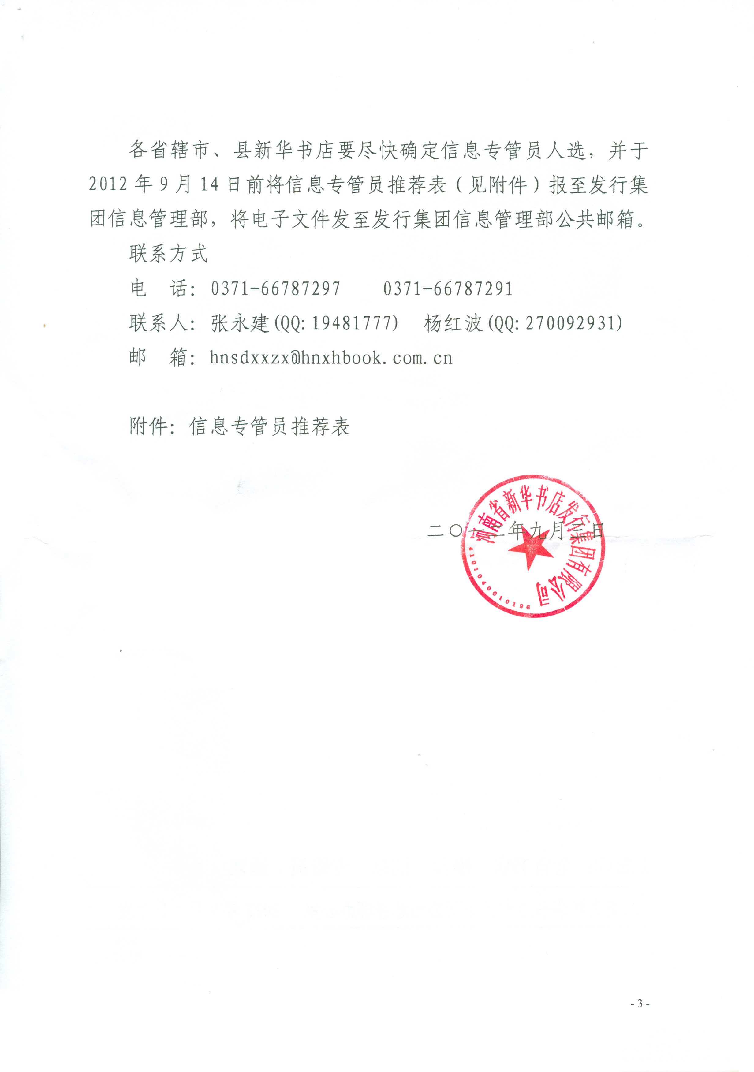 關(guān)于全省書(shū)店推薦信息專(zhuān)管員的通知
