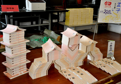 此次圖書發(fā)行員技能大賽是市總工會和新華書店第五次聯(lián)合舉辦技能大賽,與住屆大賽相比,今年的比賽難度和準(zhǔn)備工作量增加了,可選手們的自信心和熟練程度卻一點沒減。在比賽現(xiàn)場,當(dāng)裁判員的開始指令發(fā)出后,臺下選手啞雀無聲,選手們一個個都能鍵指如飛、緊張熟練地將規(guī)定內(nèi)容輸入電腦,現(xiàn)場只有“嗒嗒嗒”的敲擊鍵盤的聲音,在圖書推介比賽項目中,每位選手都能結(jié)合自己推介的圖書特點,向現(xiàn)場觀眾進(jìn)行全面、詳細(xì)的推介介紹,贏得了大家熱烈的掌聲,售書連續(xù)作業(yè)主要考核比賽選手的操作準(zhǔn)確度和連慣性,選手們都能做到計價、收款、開票、包扎四個過程一氣呵成,規(guī)定五分鐘的比賽操作,最快的選手僅用了兩分多鐘就全部完成;在圖書造型項目中,比賽選手各顯神通,充分發(fā)揮自己的想象能力,精心設(shè)計、“建造”出別出心裁的造型:有宏偉穩(wěn)固的高塔、有具有詩意的小橋流水、青蛙戲水、有氣勢宏大的古城建筑、也有設(shè)計巧妙的龍舟,還有用圖書拼出的文字“十八大”等,有的圖書造型文化氣息濃厚,有的造型突現(xiàn)時代特征,給人以強烈的視覺沖擊力,全面體現(xiàn)了圖書的文化產(chǎn)品特點。