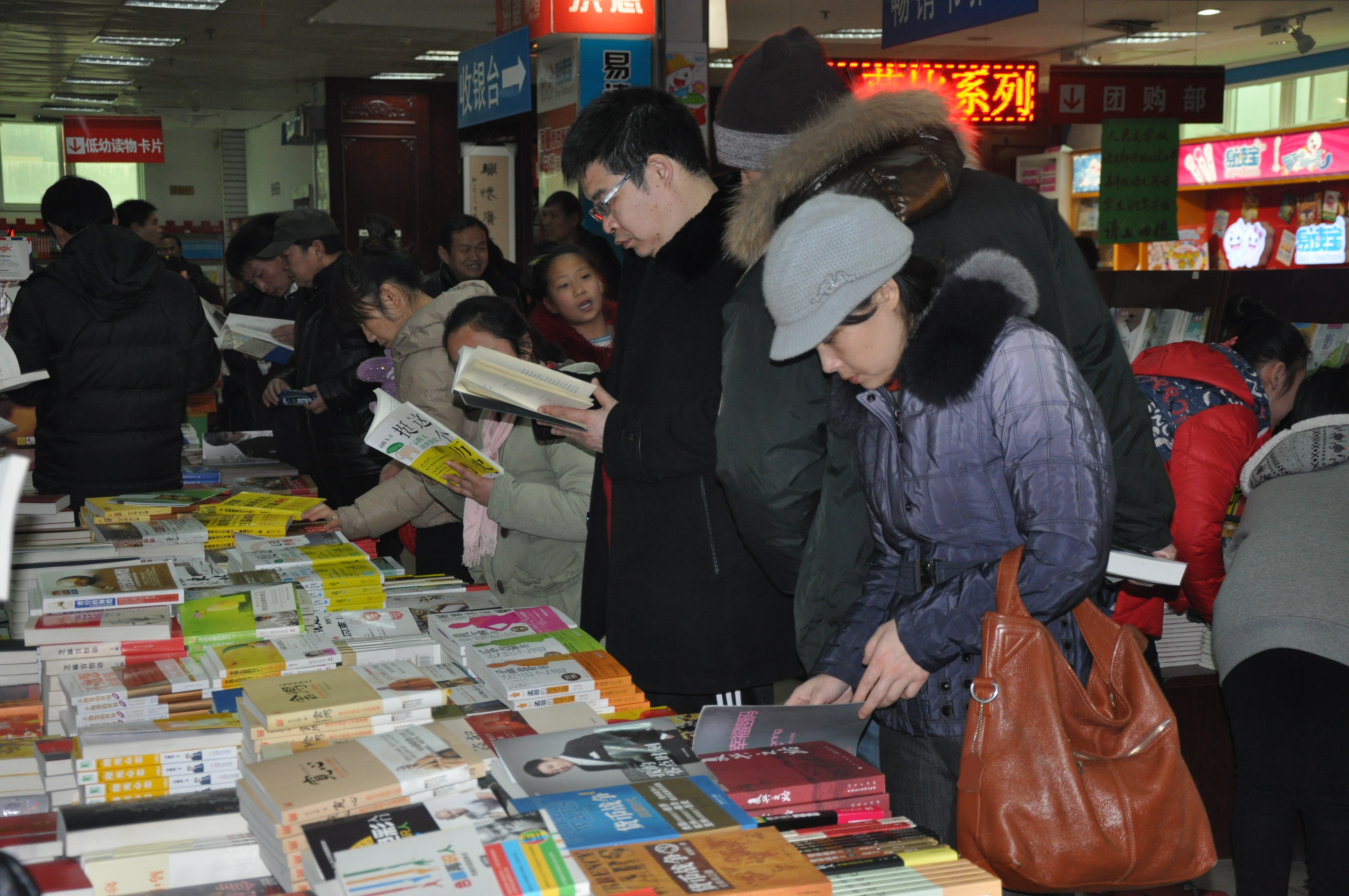蛇年春節(jié)期間,為滿足節(jié)日期間市民“充電”需求,新鄉(xiāng)市店開展了主題為“銀龍飛舞 墨香潤新春 慧聚一堂 書香浸佳節(jié)”的營銷活動;顒右(guī)定,在臘月25當(dāng)天,購書滿50元可獲鐘山書畫院書畫家現(xiàn)場書寫春聯(lián)一幅”;正月初一至正月初六期間,凡購書滿50元均可獲贈相應(yīng)的購書券和小禮品,受到市民的熱烈歡迎。從大年初二開始,市店購書中心每天接待的讀者數(shù)量是平時的三倍還多,養(yǎng)生類、科技類、文藝類圖書頗受成年市民歡迎,而以學(xué)生語文新課標(biāo)類、《查理九世》系列為主的課外讀物備受廣大青少年讀者青睞,莫言作品熱度不減,持續(xù)熱銷。同時,在節(jié)日期間也有不少讀者手持讀者俱樂部會員證,來到讀者俱樂部選擇借閱圖書的形式為自己“充電”,也有的小學(xué)生干脆把自己的寒假作業(yè)帶到讀者俱樂部,邊查資料邊寫作業(yè),來自該市實驗小學(xué)的一名小學(xué)生在家長的帶領(lǐng)下,一邊忙著從讀者俱樂部剛補充的新書中挑選自己喜愛的圖書,一邊說到利用節(jié)日閱讀一些課外圖書,一方面可以拓展自己的知識視野,同時也有利于自己的作文寫作能力的提升,非常有意義。