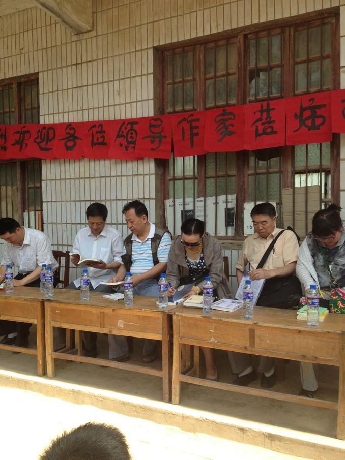 觀影結(jié)束后,著名作家鄭彥英、邵麗、喬葉、孟憲明、日月河等作家逐一朗誦并分享自己的作品,受到師生們的熱烈歡迎。據(jù)了解,這也是第一次有三位獲得魯迅文學獎的作家一起走進留守兒童學校。來自鄭州眾邦攝影俱樂部的影友們?yōu)槊课煌瑢W拍攝了人物照片,并現(xiàn)場打印留念;顒赢斕熘性瓐D書商廈為前宋莊小學贈送了大量圖書,海燕出版社為孩子們贈送了新出版的《念書的孩子》,小探索者雜志社贈送了科普讀物《小探索者》雜志、日月河贈送了《有志中國娃——面條姑娘》。