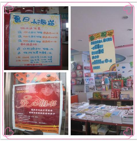 夏季已經(jīng)進(jìn)入中伏天氣,火熱的太陽焦灼著城市的每一個(gè)角落,為給讀者們一個(gè)清新的讀書環(huán)境,衛(wèi)輝市店多措并舉,積極開展了多種精彩活動(dòng)。一是開展捐贈(zèng)圖書、傳遞愛心活動(dòng),希望廣大讀者加入新華愛心隊(duì)伍,盡我們的微薄之力,幫助那些家境貧寒、身殘志堅(jiān)的孩子們達(dá)成讀書的心愿。二是開展圖書展銷活動(dòng),為引導(dǎo)廣大青少年多讀書、讀好書,該店舉辦“2013年暑期青少年重點(diǎn)推薦讀物”主題展銷活動(dòng),所有推薦圖書為該店精選圖書系列。三是開展圖書打折活動(dòng)(7月10日—8月31日):“關(guān)愛一夏、祝您金榜題名”,凡2013年中考、高考畢業(yè)生,憑本人準(zhǔn)考證購書均可享受全場圖書及音像制品九折優(yōu)惠。 四是“新華清涼夜市”—限時(shí)打折:書店的九折不是只為學(xué)生打折,為了確保大家都可以購買便宜正版的圖書和音像制品,該店推出限時(shí)營銷方針,也為回饋廣大讀者的厚愛,每周二、四晚18:30——19:30,全場圖書及音像制品九折優(yōu)惠。