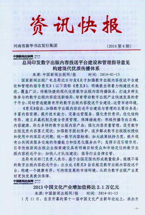 來(lái)源:河南省新華書店發(fā)行集團(tuán)有限公司  作者:河南省新華書店發(fā)行集團(tuán)有限公司  發(fā)布時(shí)間:2014/1/17 9:54:31  閱讀次數(shù):8505