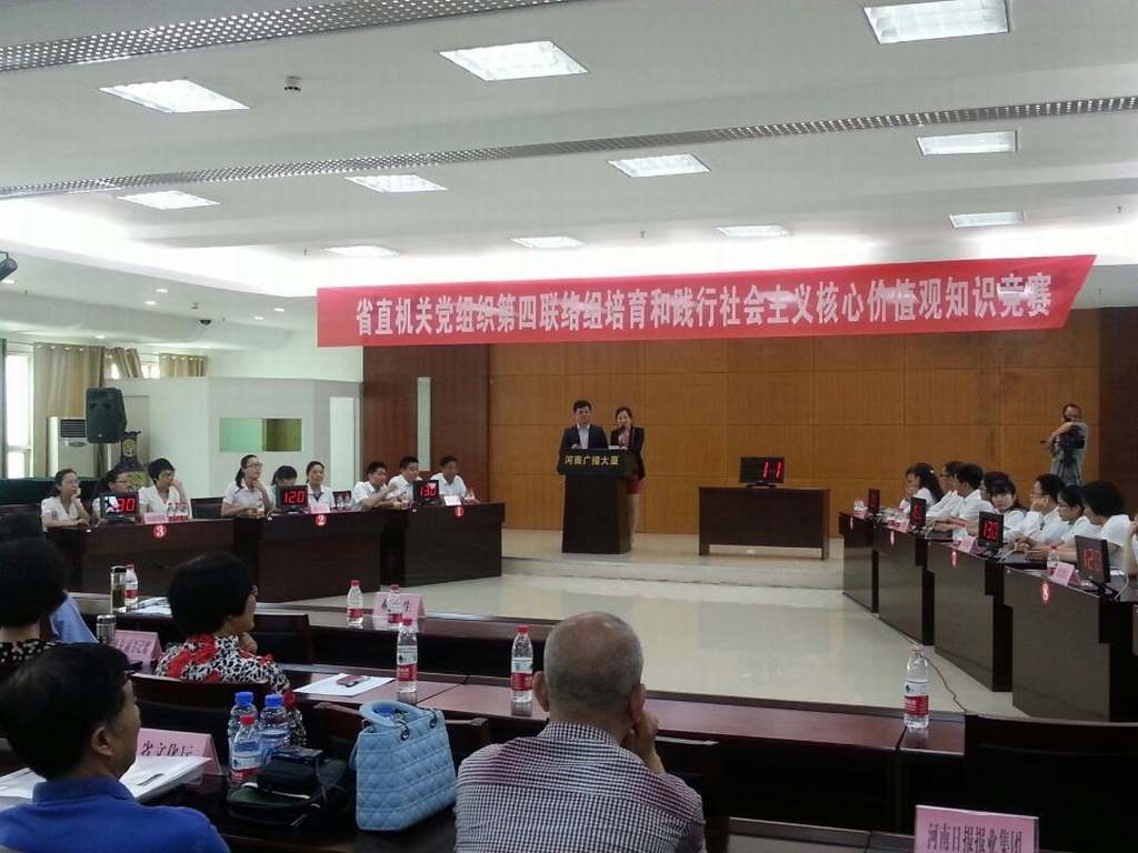 5月21日上午,由省委宣傳部主辦的省直機(jī)關(guān)黨組織第四聯(lián)絡(luò)組培育和踐行社會(huì)主義核心價(jià)值觀知識(shí)競(jìng)賽在省廣電局舉行,河南省新華書店發(fā)行集團(tuán)選派的兩名選手牛聰穎、胡丹和中學(xué)生學(xué)習(xí)報(bào)社選派的選手李媛組成的中原出版?zhèn)髅郊瘓F(tuán)代表隊(duì)經(jīng)過(guò)激烈角逐,最終在18個(gè)代表隊(duì)中脫穎而出榮獲一等獎(jiǎng),并將被推薦參加下一輪由省委省直工委組織實(shí)施的培育和踐行社會(huì)主義核心價(jià)值觀知識(shí)競(jìng)賽選拔賽。 為深入貫徹落實(shí)黨的十八大、十八屆三中全會(huì)精神和中央《關(guān)于培育和踐行社會(huì)主義核心價(jià)值觀的意見(jiàn)》、省委關(guān)于推進(jìn)文明河南建設(shè)的部署要求,省委省直工委從3月份開(kāi)始,面向省直和中央駐豫各單位開(kāi)展了培育和踐行社會(huì)主義核心價(jià)值觀知識(shí)競(jìng)賽活動(dòng)。發(fā)行集團(tuán)接到中原出版?zhèn)髅郊瘓F(tuán)轉(zhuǎn)發(fā)的《關(guān)于組織舉辦省直機(jī)關(guān)培育和踐行社會(huì)主義核心價(jià)值觀知識(shí)競(jìng)賽的通知》后,對(duì)此項(xiàng)活動(dòng)高度重視、積極響應(yīng),第一時(shí)間組織挑選優(yōu)秀隊(duì)員參加中原出版?zhèn)髅郊瘓F(tuán)代表隊(duì),并在訓(xùn)練時(shí)間、學(xué)習(xí)資料等方面提供保障,使其全身心投入到緊張的準(zhǔn)備工作之中,爭(zhēng)取在比賽中取得好成績(jī),為發(fā)行集團(tuán)、中原出版?zhèn)髅郊瘓F(tuán)爭(zhēng)光添彩。 在省直機(jī)關(guān)黨組織第四聯(lián)絡(luò)組培育和踐行社會(huì)主義核心價(jià)值觀知識(shí)競(jìng)賽中,有中共河南省委宣傳部、河南日?qǐng)?bào)報(bào)業(yè)集團(tuán)、河南省廣電局、河南省新聞出版局、中原出版?zhèn)髅郊瘓F(tuán)、新華社河南分社等18家省直和中央駐豫單位參加比賽。本次知識(shí)競(jìng)賽分為必答題、搶答題、風(fēng)險(xiǎn)題、附加題四個(gè)環(huán)節(jié),各參賽隊(duì)基準(zhǔn)分100分,通過(guò)競(jìng)賽環(huán)節(jié)進(jìn)行增減。在比賽中,中原出版?zhèn)髅郊瘓F(tuán)代表隊(duì)的牛聰穎、胡丹、李媛三位隊(duì)員沉著冷靜,答題認(rèn)真,思維敏捷,發(fā)揮出色。她們的精彩表現(xiàn),不時(shí)贏來(lái)現(xiàn)場(chǎng)觀眾的一陣陣掌聲。 通過(guò)激烈角逐,中原出版?zhèn)髅郊瘓F(tuán)和河南省委宣傳部?jī)芍Т黻?duì)最終脫穎而出,獲得一等獎(jiǎng),并將一起代表省直機(jī)關(guān)黨組織第四聯(lián)絡(luò)組參加6月上旬由省委省直工委組織實(shí)施的培育和踐行社會(huì)主義核心價(jià)值觀知識(shí)競(jìng)賽選拔賽。 發(fā)行集團(tuán)公司將以此次參加培育和踐行社會(huì)主義核心價(jià)值觀知識(shí)競(jìng)賽活動(dòng)為契機(jī),認(rèn)真落實(shí)中央《關(guān)于培育和踐行社會(huì)主義核心價(jià)值觀的意見(jiàn)》和省委關(guān)于推進(jìn)文明河南建設(shè)的部署要求,在廣大干部職工中間大力開(kāi)展社會(huì)主義核心價(jià)值觀學(xué)習(xí)教育,引導(dǎo)大家更加深刻理解其科學(xué)內(nèi)涵和精神實(shí)質(zhì),推動(dòng)社會(huì)主義核心價(jià)值觀的廣泛傳播,進(jìn)一步增強(qiáng)對(duì)社會(huì)主義核心價(jià)值觀的認(rèn)知認(rèn)同和培育踐行的自覺(jué)性。