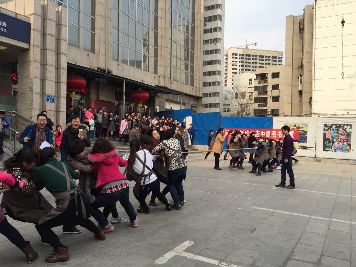 為慶祝“三·八”婦女節(jié),豐富職工的精神文化生活,增強(qiáng)凝聚力和團(tuán)體合作精神,中原圖書(shū)大廈工會(huì)分會(huì)于2015年3月8日下午3點(diǎn),舉辦了女員工拔河比賽。