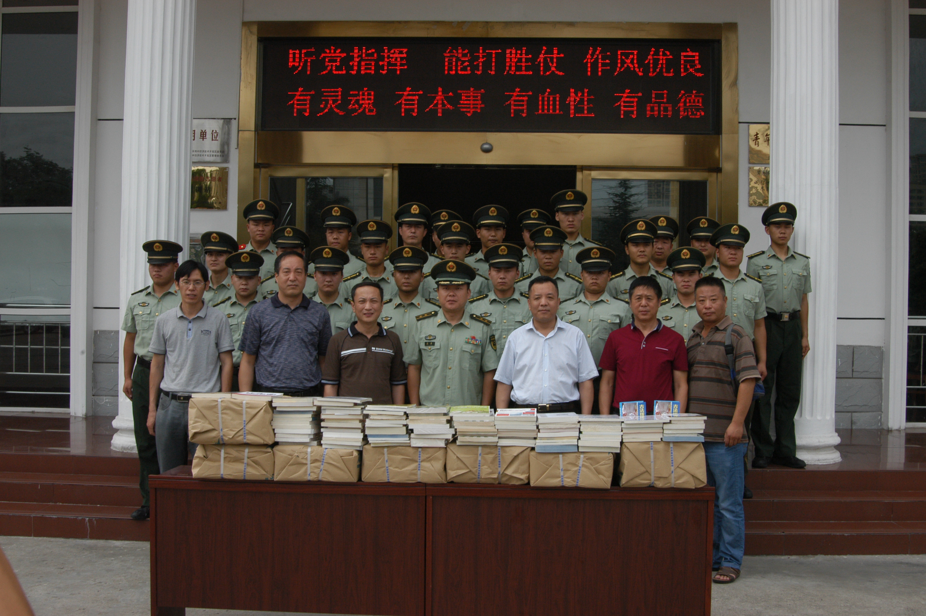 8月1日上午,發(fā)行集團(tuán)鄭州市經(jīng)濟(jì)技術(shù)開(kāi)發(fā)區(qū)消防大隊(duì)贈(zèng)送價(jià)值萬(wàn)余元的圖書(shū)。黨委書(shū)記李向午、工會(huì)主席薛冠華帶領(lǐng)黨委辦公室、工會(huì)及離退休辦公室、物業(yè)管理部等部門(mén)負(fù)責(zé)人一起前往經(jīng)開(kāi)區(qū)消防大隊(duì),慰問(wèn)消防官兵,贈(zèng)送圖書(shū),共慶八一建軍節(jié),表達(dá)對(duì)人民子弟兵的節(jié)日祝福和軍民間的魚(yú)水深情。
