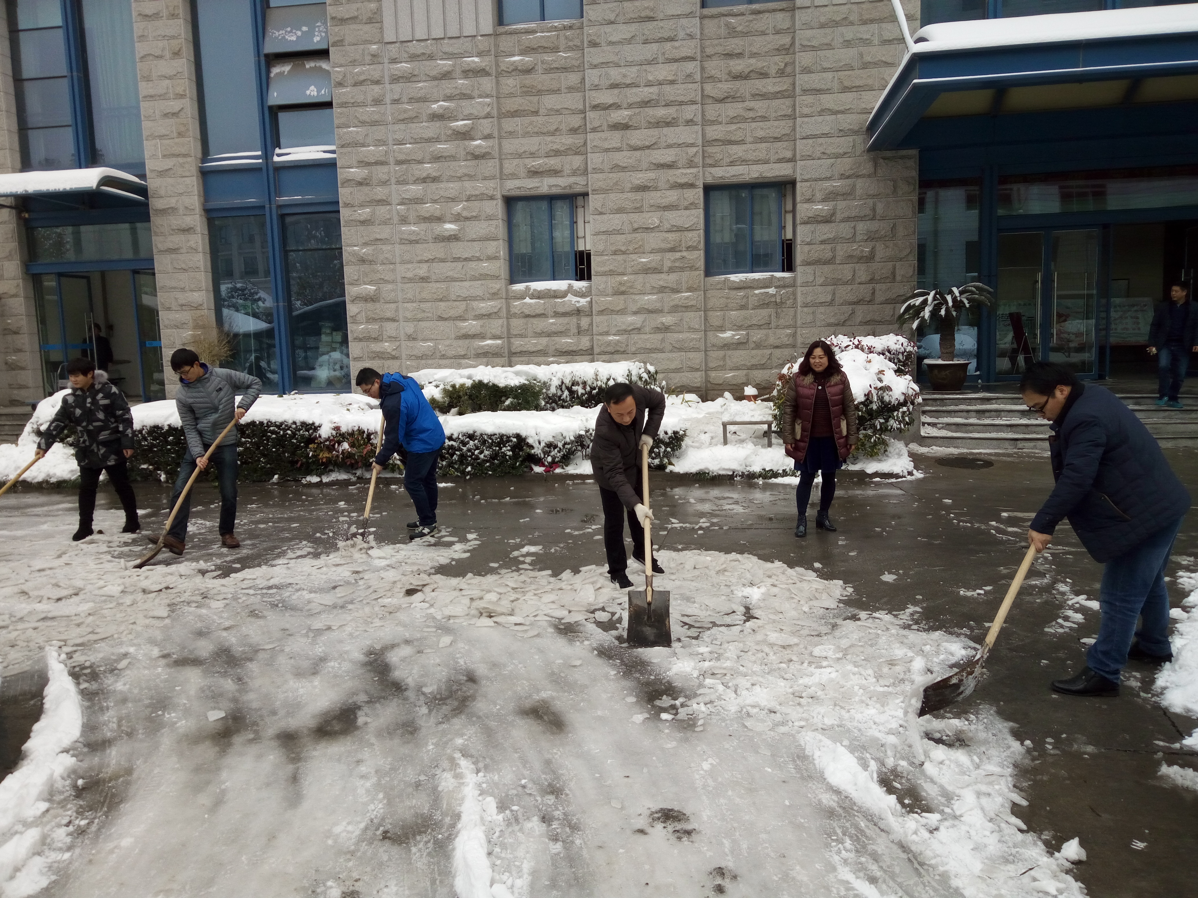 11月22日,大雪席卷鄭州,形成較厚積雪,帶來出行不便。第二日清晨,發(fā)行集團領導和各部室員工克服交通困難,早早趕來,鏟冰掃雪,及時清障,確保了公司院內(nèi)道路通暢。